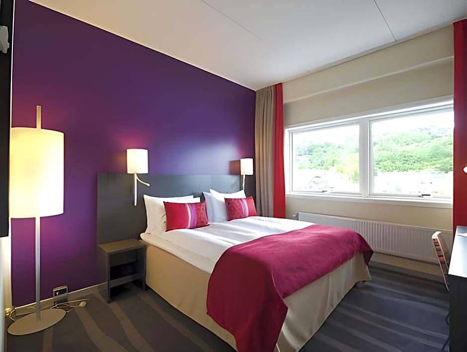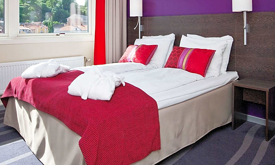 Overlooking Halden's harbor, this room includes a mini-bar, work desk and flat-screen TV. Bathrobes and slippers are added for extra comfort.